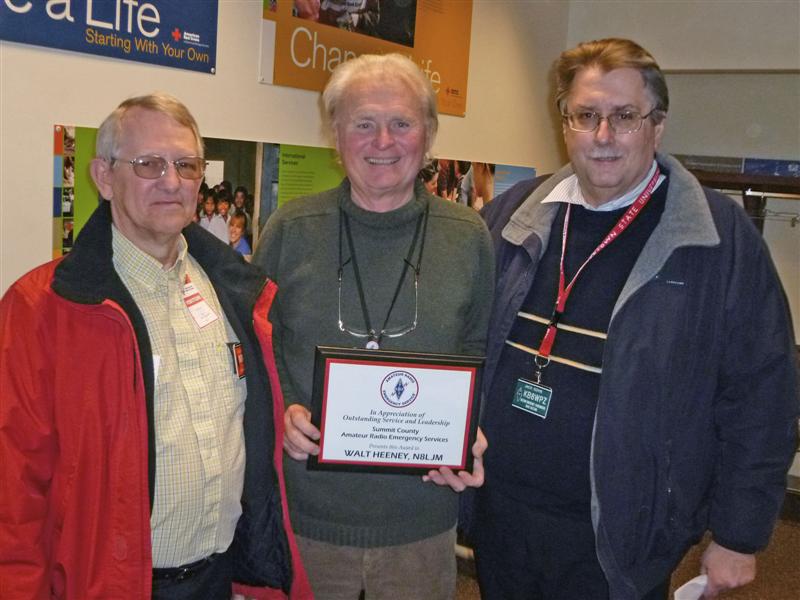 Walt's service to the local community and ARES was recognized with the presentation of a plaque commemerating his outstanding service.