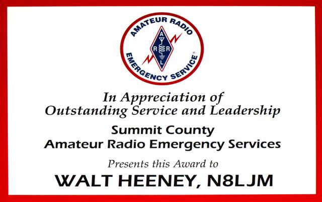 Walt Heeney (N8LJM), Emergency Coordinator for Summit County ARES, is stepping down and Dennis Conklin (AI8P) has been assigned as his replacement.